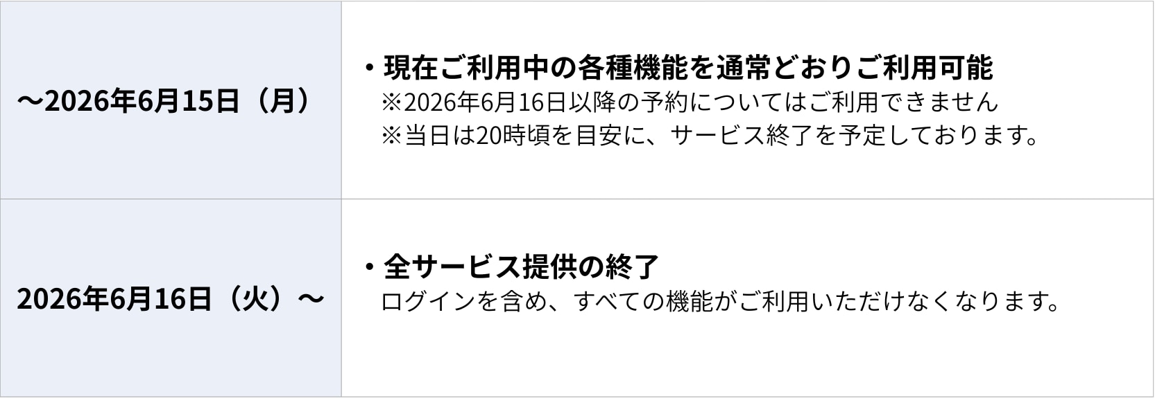 ■サービス終了日:2026年6月15日(月)20時予定