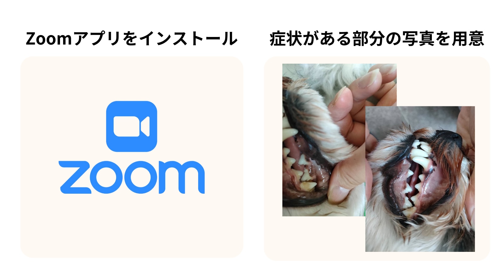 ・ペットの写真(症状がある部分等)を撮影しておくと、症状を伝えやすくなります。オンライン診療中に「共有」ボタンを押すことで、予め撮影をした写真を共有することができます。