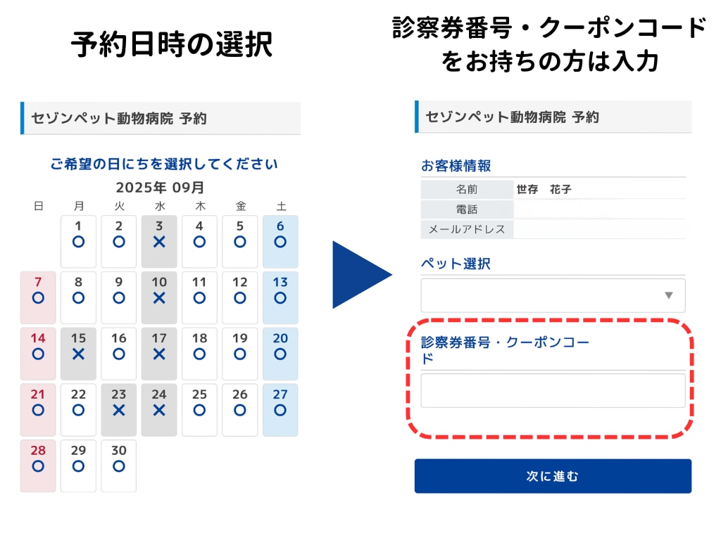 ※予約当日のキャンセルは直接動物病院へお電話にてご連絡ください。 |